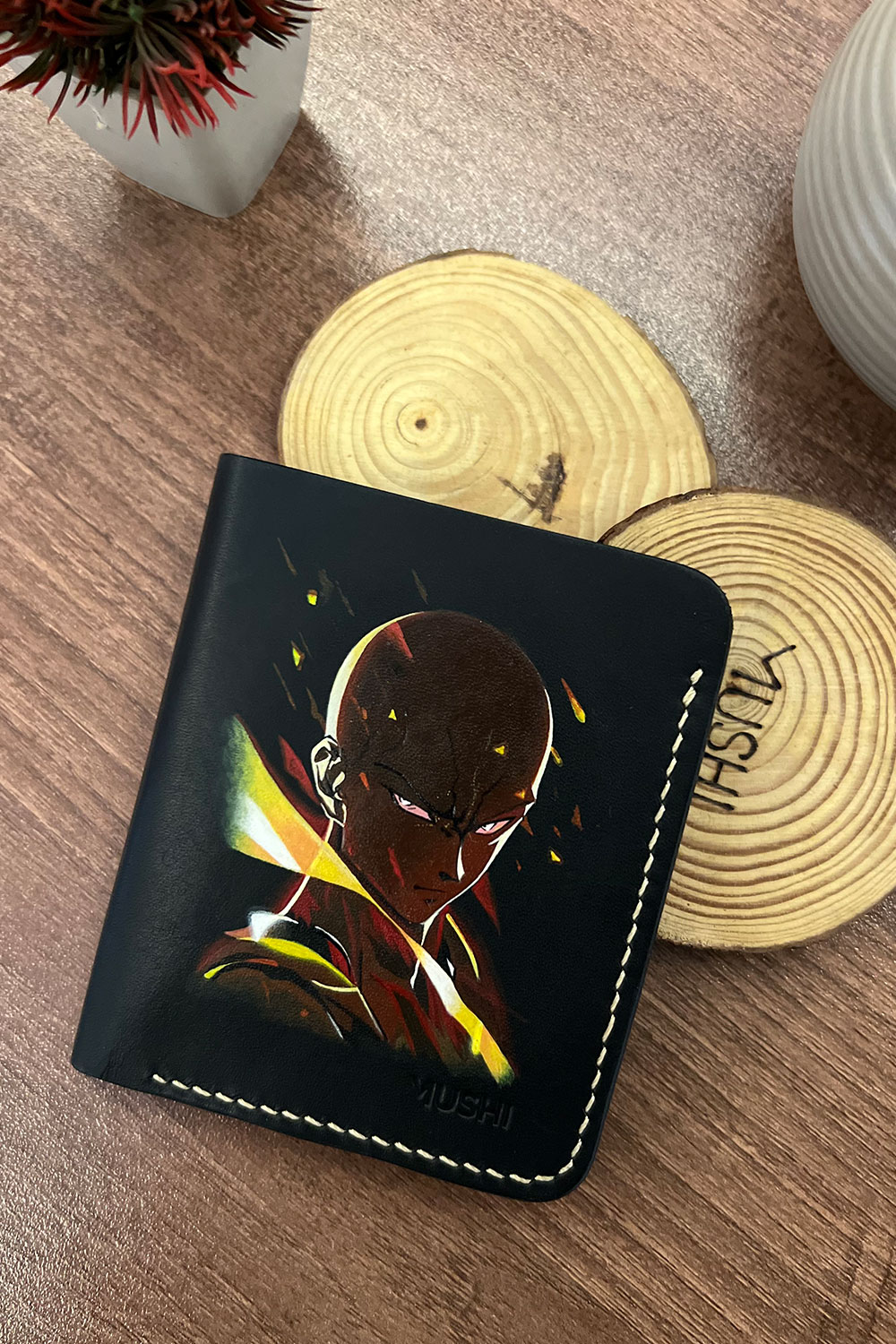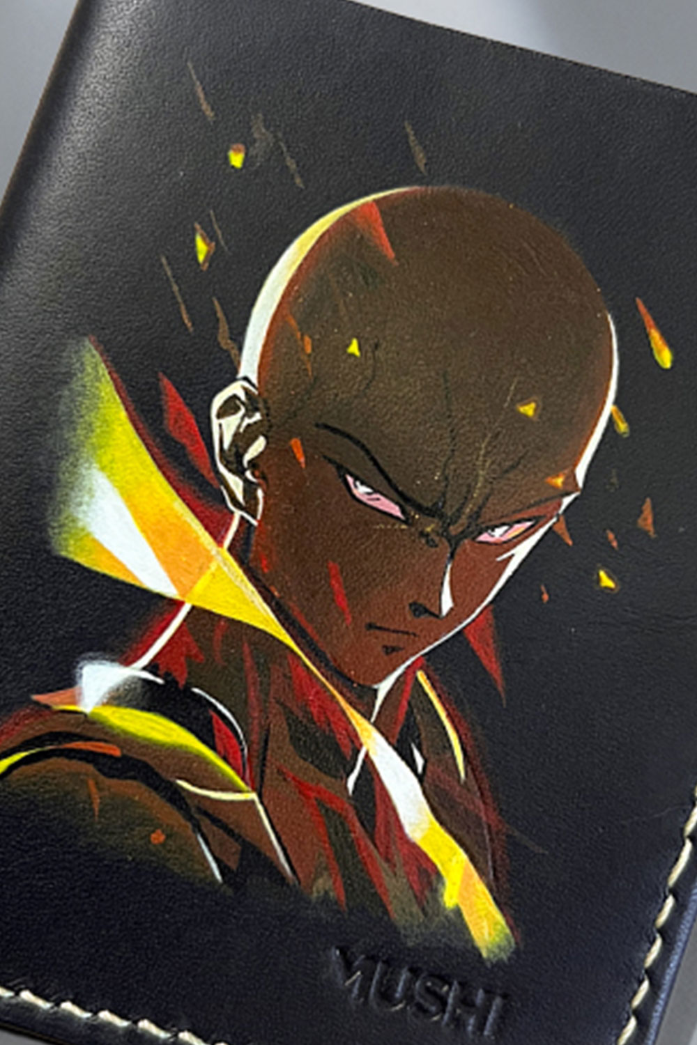The Saitama One Punch Man Anime wallet by MUSHI blends anime energy with fine leather artistry. Crafted for fans who admire individuality and bold design, this wallet combines sleek style with powerful storytelling. Moreover, each piece is hand-stitched with care and hand-painted on genuine vegetable-tanned leather, making it truly one of a kind.